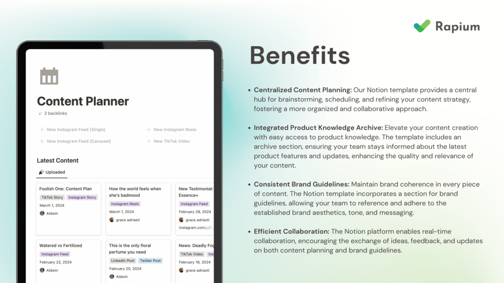 - ⭐Efficiency: Centralize all content planning and production tasks in one place, eliminating the need for multiple tools and spreadsheets.