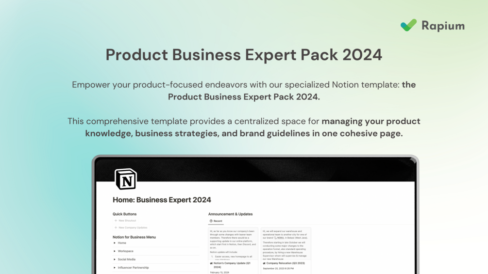We have the Notion Product Business Expert Pack in Full Template, for those of you who are willing to buy the templates for your team and company in a more integrated app.
