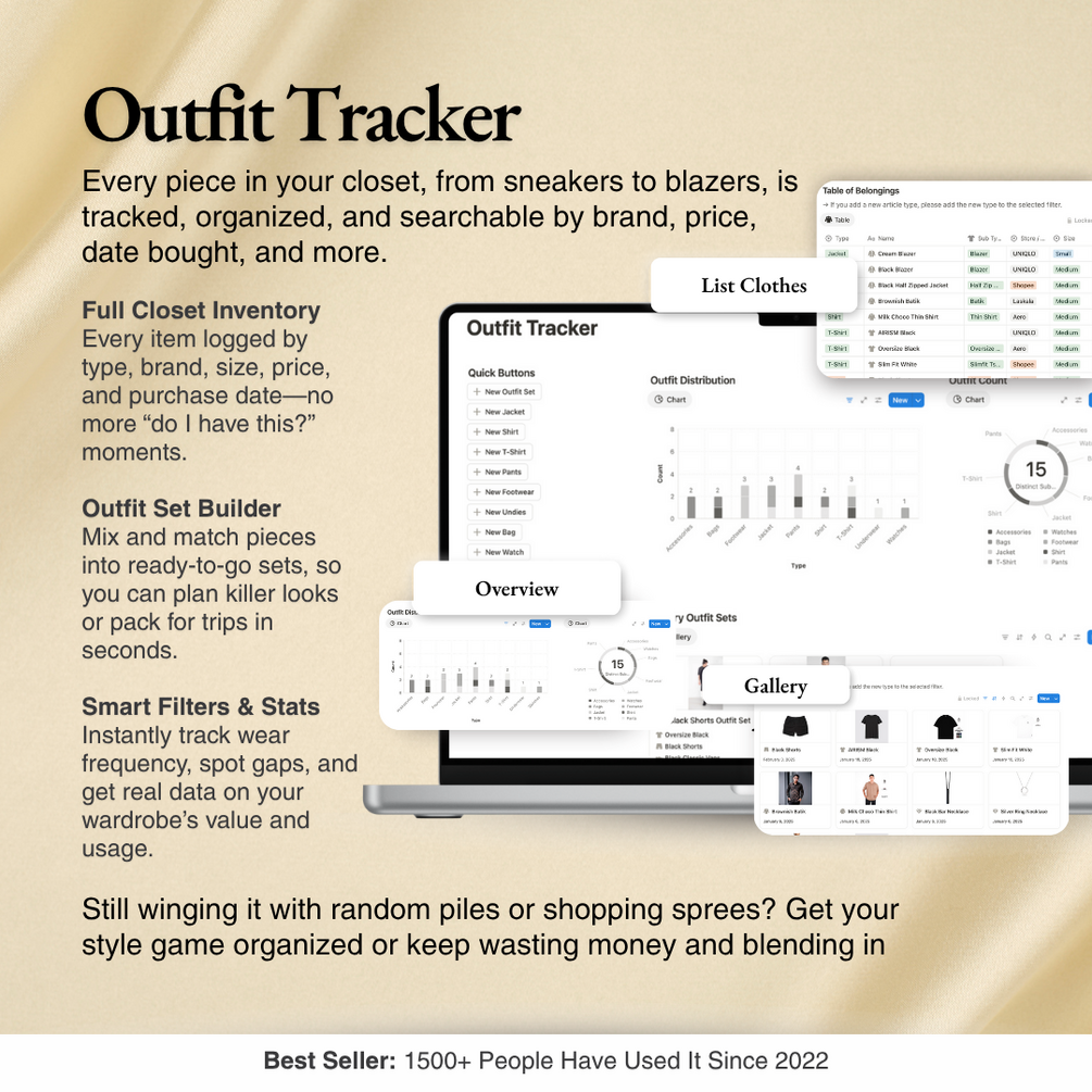 - Mobile & Desktop Friendly: Access and update your outfit tracker anywhere, anytime.