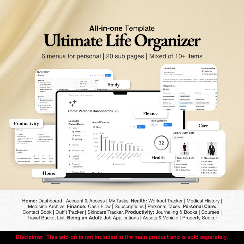 Forget messy closets and forgotten outfits. This is your high-performance, anti-mainstream dashboard for mastering your wardrobe. No more chaos, no more wasted money—just pure style, clarity, and confidence. If you’re serious about looking good and making every piece count, this template is your next-level fashion tool.