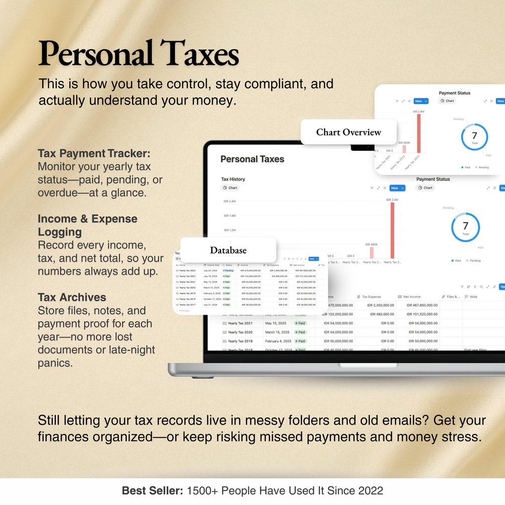 Ready to stop stressing over tax season and finally get your finances under control? This Notion template is your all-in-one command center for tracking, organizing, and archiving every detail of your personal taxes—built for students, freelancers, and anyone who refuses to let bureaucracy mess with their money.