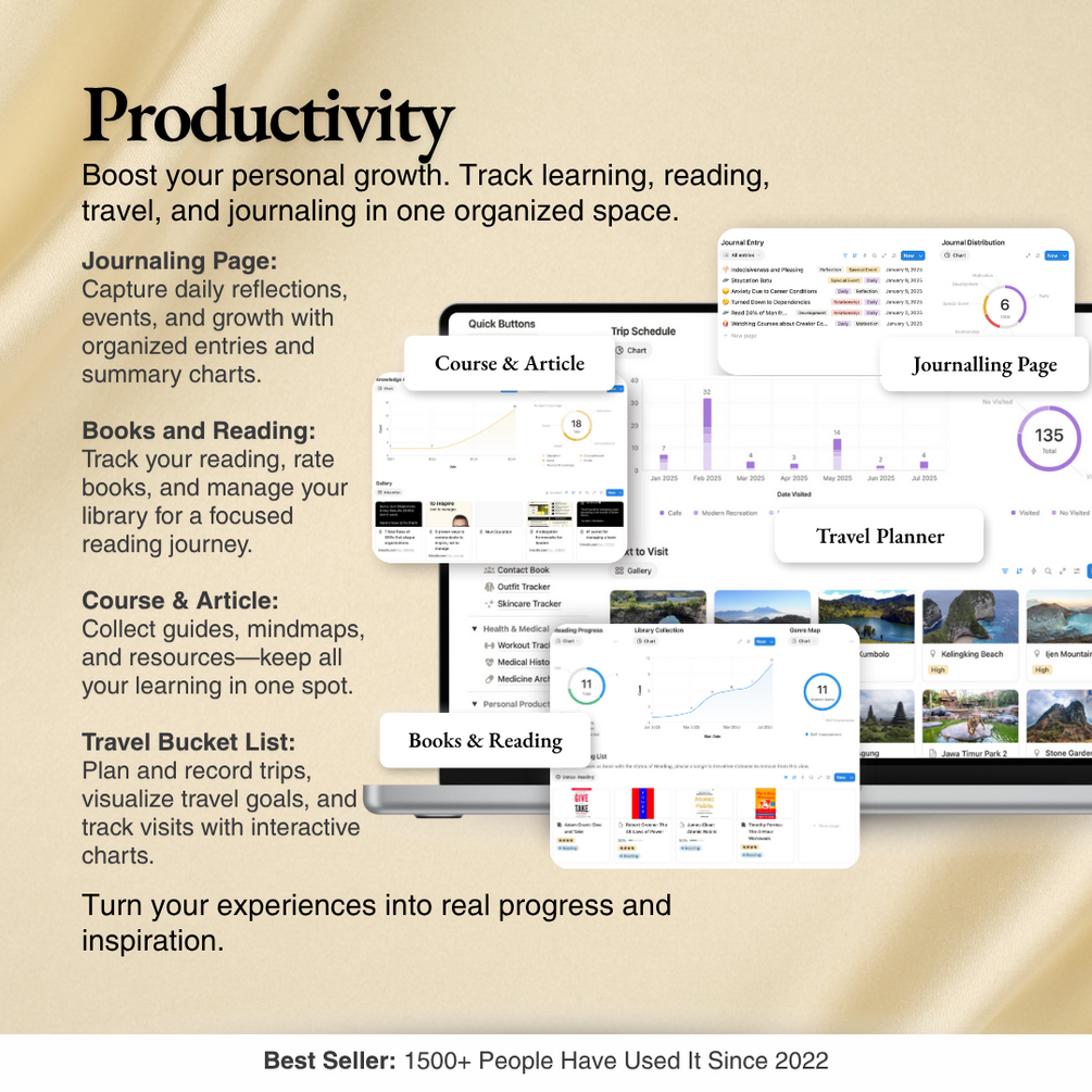 Productivity Hub: Streamline your tasks, journaling, book lists, courses, and articles—get more done, stress less.