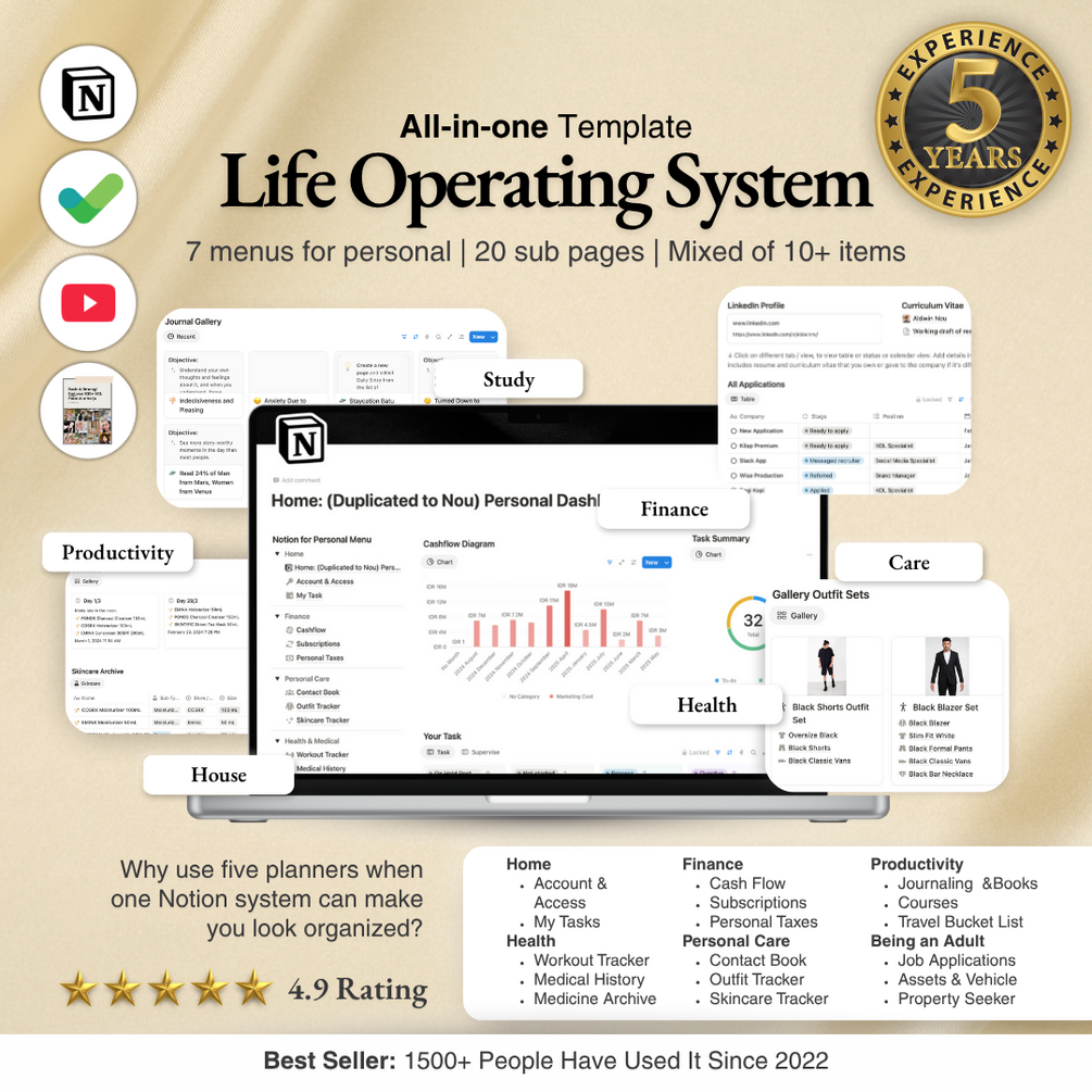 This isn’t just a digital planner. It’s a complete life operating system. Track your money, master your habits, organize your health, and crush your goals—all in one clean, customizable Notion workspace.