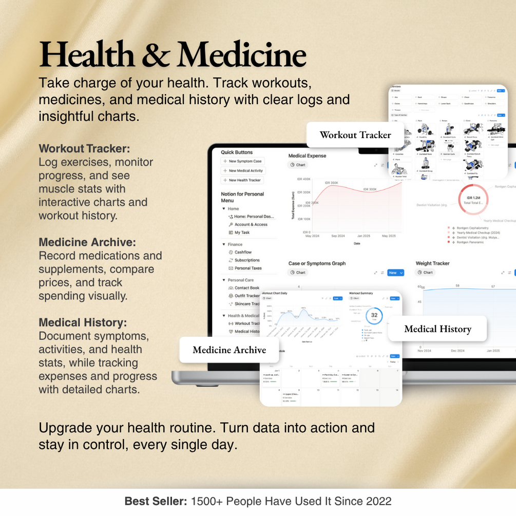 Health & Wellness: Log workouts, skincare, medical records, and medications—your health, finally organized.