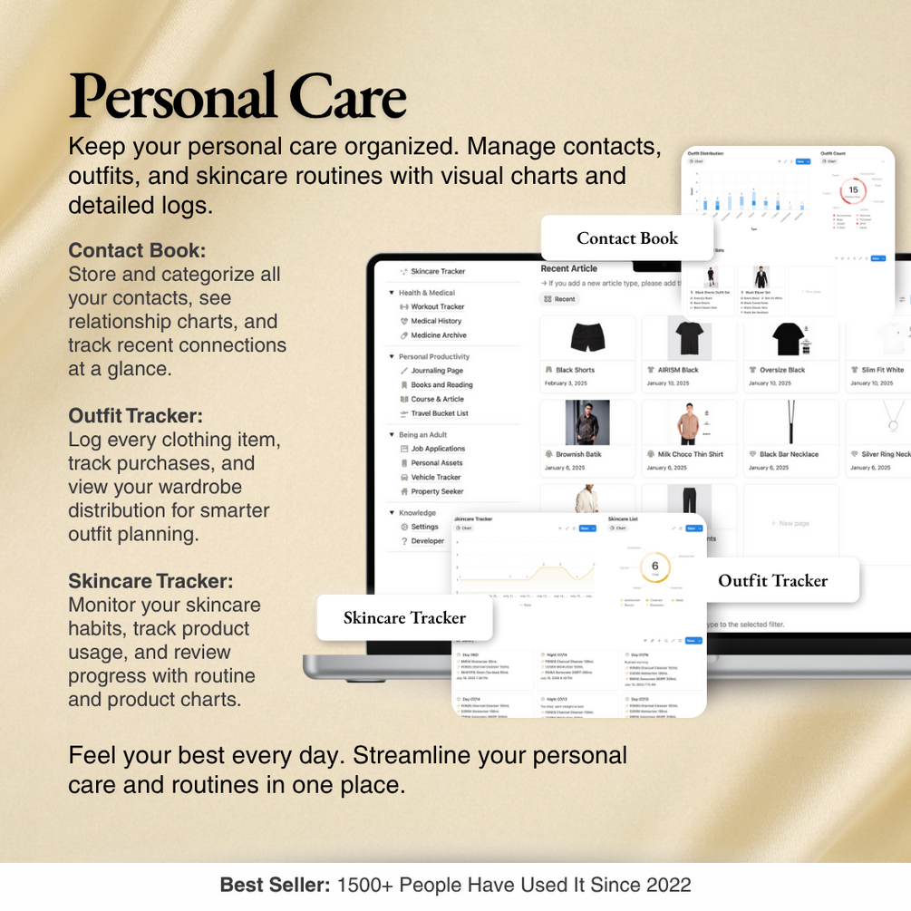 • Health & Wellness: Log workouts, skincare, medical records, and medications—your health, finally organized.