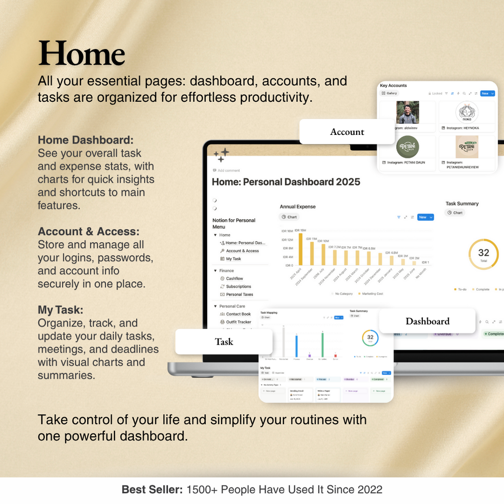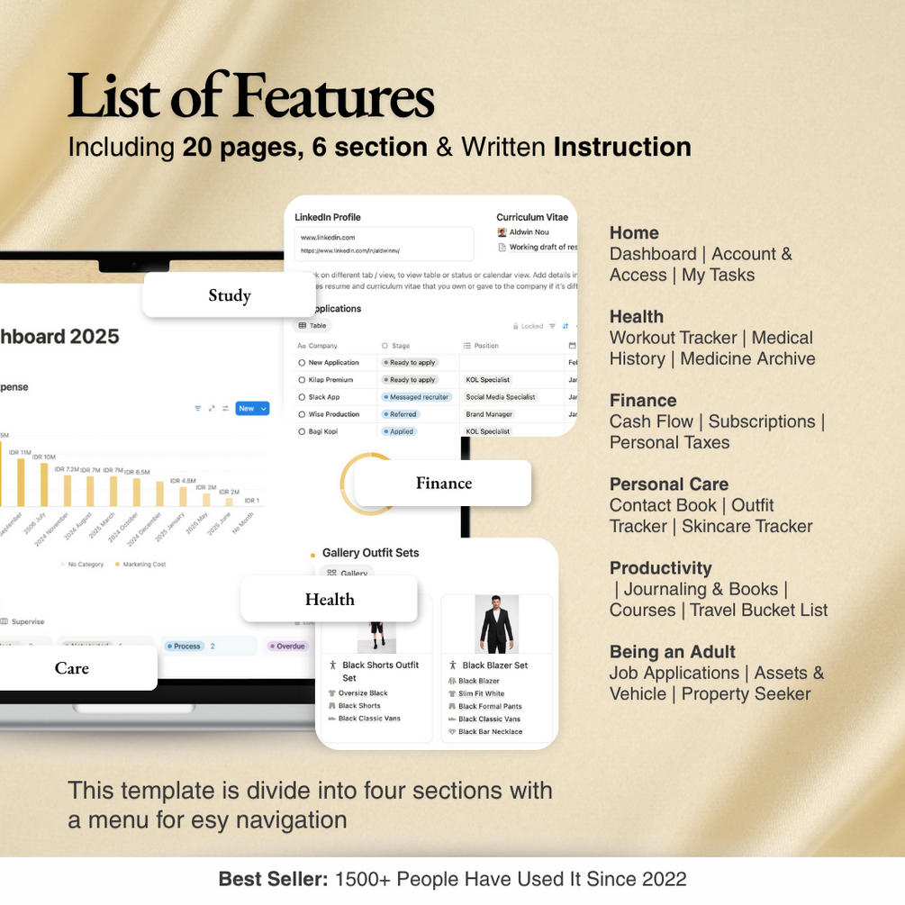 notion template, personal dashboard, finance tracker, productivity planner, health tracker, asset manager, digital planner, life organizer, subscription tracker, job application tracker, property management, journaling, travel bucket list, task manager, notion bundle, 2025 planner, daily planner, digital download, entrepreneur tools, student planner