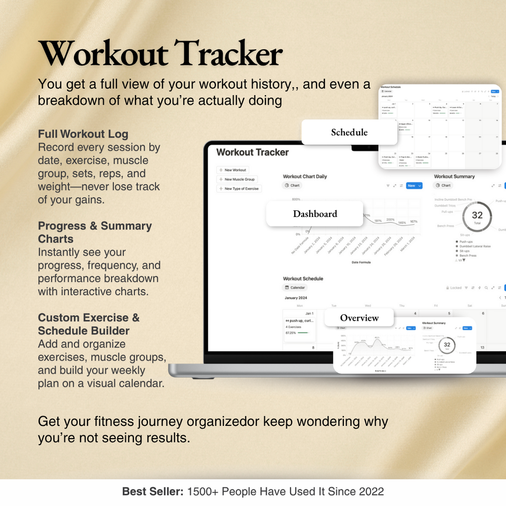 Ready to stop winging your workouts and actually see real progress? This is your all-in-one, anti-mainstream Workout Tracker—built for students, athletes, and anyone who’s done with basic fitness apps and wants to take their training seriously. No more lost routines, forgotten PRs, or random notes. With this template, every set, rep, and muscle group is tracked, visualized, and totally under your command.